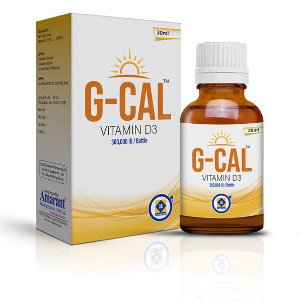 G-Cal 30,000 IU O/Drops is a high-potency Vitamin D3 supplement designed to quickly correct severe deficiency. It relieves bone and muscle weakness and aids in managing osteoporosis. Ideal for individuals with critical vitamin D requirements under medical guidance.